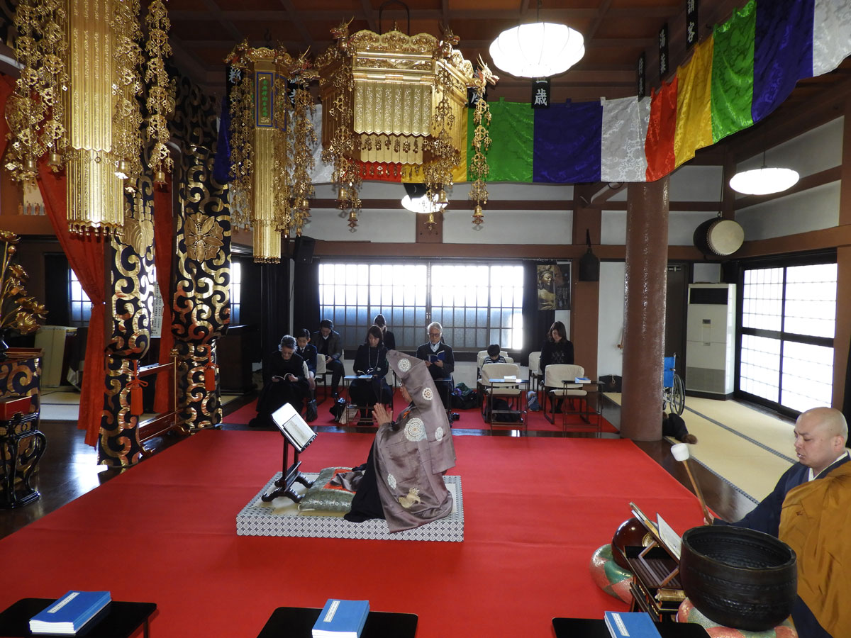 「生前戒名授与式」は、「わたしはお釈迦さまの教えを信じる仏教徒です」とはっきりと口にすることができ、み教えを毎日の生活の中にいかせるようにと願って勤めております。